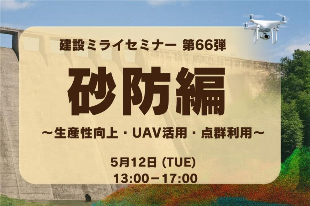 満足度89%超え*のオンラインセミナー *当社アンケートによる 建設ミライセミナー第66弾 砂防編 ~生産性向上・UAV活用・点群利用~ 認定学習講座…… -